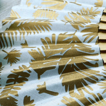 Ce modèle, en toile blanche et imprimé doré,