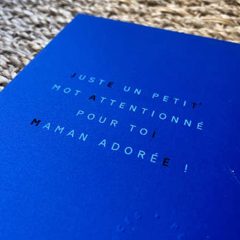 Cette carte est fabriquée en papier fait à partir de fécule de pommes de terre recyclée dans un petit atelier lyonnais. Les lettres sont découpées au laser.